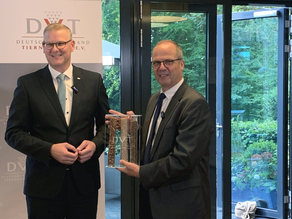 Der Deutsche Verband Tiernahrung e. V. (DVT) verleiht den DVT-Award 2022 an Jan Lahde. Auf der Jahrestagung im September in Berlin wurde der Norddeutsche für seine langjährigen ehrenamtlichen Dienste mit dem DVT-Award ausgezeichnet. Lahde war seit 1994 im Vorstand des Bundesverbandes der Mischfutterhersteller, mit der Gründung des DVT im Jahr 2001 Vorstandsmitglied und von 2003 bis zu seiner Wahl zum Präsidenten im Jahr 2014 als Vizepräsident aktiv.