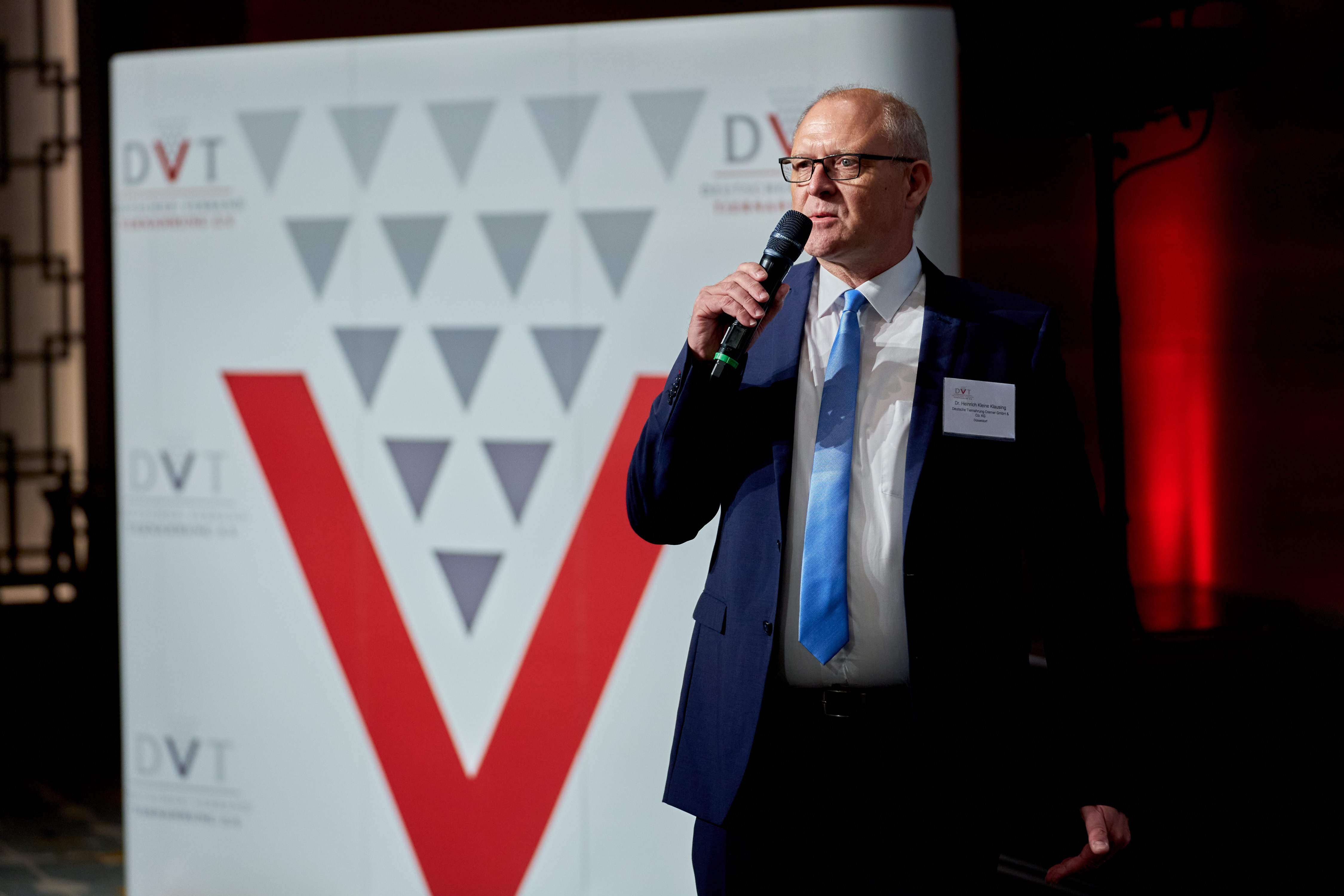 (Begleitfoto I: Dr. Heinrich Kleine Klausing auf der DVT-Jahrestagung 2023, Quelle: DVT/Nürnberger /// Begleitfoto II: Dr. Anton Einberger wird auf der DVT-Jahrestagung 2023 von Prof. Dr. Wilhelm Windisch (TU München, links) und DVT-Präsident Cord Schiplage (rechts) geehrt, Quelle: DVT/Nürnberger)